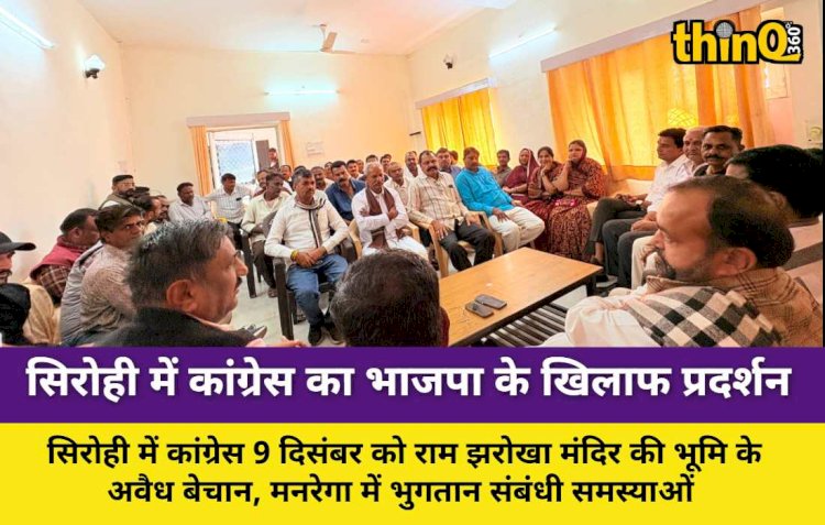 सिरोही (Sirohi) में कांग्रेस (Congress) 9 दिसंबर को राम झरोखा मंदिर (Ram Jharokha Mandir) की भूमि के अवैध बेचान, मनरेगा (MGNREGA) में भुगतान संबंधी समस्याओं और प्रशासन में भ्रष्टाचार सहित जनहित के कई मुद्दों को लेकर भाजपा (BJP) सरकार के खिलाफ जिला मुख्यालय पर प्रदर्शन करेगी। इस निर्णय को पूर्व मुख्यमंत्री सलाहकार संयम लोढ़ा (Sanyam Lodha) की अध्यक्षता में हुई बैठक में लिया गया।