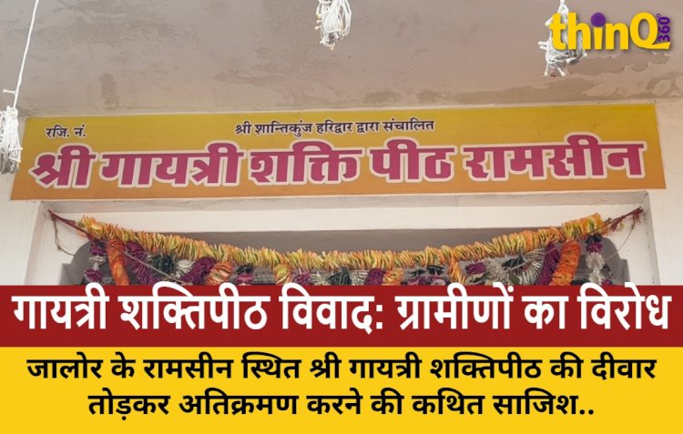 जालोर के रामसीन स्थित श्री गायत्री शक्तिपीठ की दीवार तोड़कर अतिक्रमण करने की कथित साजिश का ग्रामवासियों और शक्तिपीठ प्रबंधन ने कड़ा विरोध किया है। इस संबंध में जिला कलेक्टर और पुलिस अधीक्षक को ज्ञापन सौंपकर कार्रवाई की मांग की गई है।