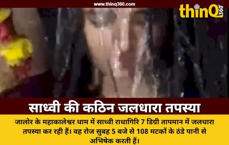 जालोर | राजस्थान के जालोर जिले में इन दिनों कड़ाके की ठंड पड़ रही है। इस भीषण सर्दी के बीच भीनमाल उपखंड के महाकालेश्वर धाम में एक अनोखी तपस्या देखने को मिल रही है। तेईस साल की साध्वी राधागिरि करीब सात डिग्री तापमान में जलधारा तपस्या कर रही हैं। वह प्रतिदिन सुबह पांच बजे से सात बजे तक ठंडे पानी की बौछारों के बीच साधना करती हैं।