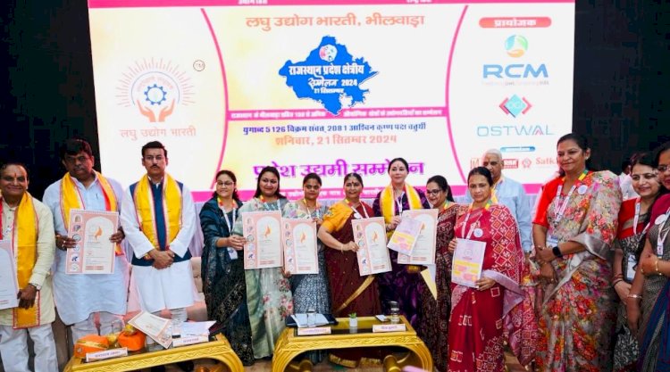 लघु उद्योग भारती के राजस्थान प्रदेश सम्मेलन 2024 में प्रदेश भर के 160 औद्योगिक क्षेत्र के प्रतिनिधियों ने भाग लिया जिसमें शुरुआती सत्र में उद्योगों की विभिन्न समस्याओं उनके समाधान पर विस्तार से चर्चा हुई तथा संगठन को और अधिक व्यापक बनाने का कार्य योजना पर विचार हुआ। सम्मेलन प्रभारी रविंद्र जाजू ने कहा कि भीलवाड़ा मिनरल, खनिज संपदा में अति समृद्ध है। इस संबंध में आवश्कता सरकारी नीति एवम सहयोग की है। भीलवाड़ा में टेक्सटाइल पार्क की घोषणा एवं जमीन आवंटन किया हुआ है जिसमें क्रियान्वयन हेतु बिजली दर में कमी, अनलिमिटेड सोलर, स्पेशल औद्योगिक जोन एवम सम्पूर्ण कार्ययोजना प्रस्तुत की जानी चाहिए जिससे टेक्सटाइल पार्क धरातल पर आ सके।