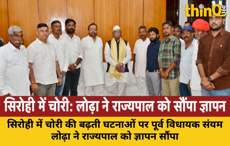 सिरोही (Sirohi) में चोरी की बढ़ती घटनाओं पर पूर्व विधायक संयम लोढ़ा (Sanyam Lodha) ने राज्यपाल (Governor) को ज्ञापन सौंपा, पुलिस-प्रशासन (Police-Administration) पर लापरवाही का आरोप लगाया।