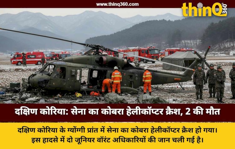 दक्षिण कोरिया के ग्योंग्गी प्रांत में सेना का कोबरा हेलीकॉप्टर क्रैश हो गया। इस हादसे में दो जूनियर वॉरंट अधिकारियों की जान चली गई है।
