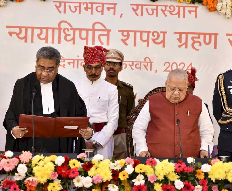 जयपुर। राज्यपाल कलराज मिश्र ने मंगलवार को राजभवन में मनिन्द्र मोहन श्रीवास्तव को राजस्थान उच्च न्यायालय के मुख्य न्यायाधिपति पद की शपथ दिलाई। जस्टिस श्रीवास्तव ने हिंदी में शपथ ली।