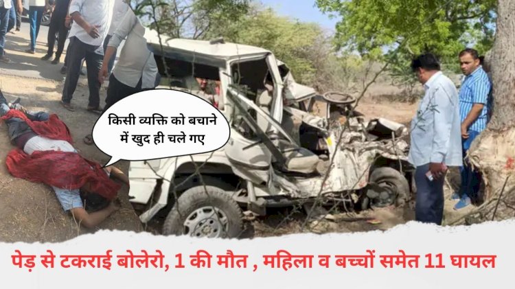 पेड़ से टकराई बोलेरो, 1 की मौत:कुलदेवी के दर्शन कर लौट रहा था परिवार; महिला व बच्चों समेत 11 घायल